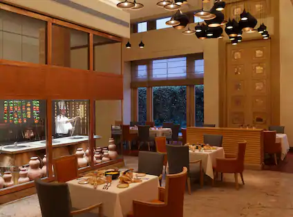 North 27 serves global cuisine buffet and à la carte style, with live cooking stations and courtyard views. Kebab-e-que offers fine Indian dishes for dinner in an elegant setting. The Plush Bar is open 24 hours.