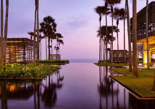 Perched on the dramatic limestone cliffs of Uluwatu, Alila Villas Uluwatu is a masterpiece of modern eco-luxury. Designed by award-winning architects WOHA, the resort seamlessly blends minimalist architecture with Balinese charm and sustainability. The property features 65 expansive private villas, each with its own infinity pool, open-air pavilion, and sweeping views of the Indian Ocean.